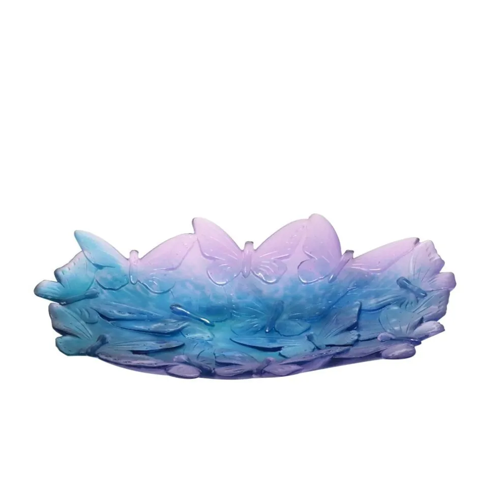 Du bleu, du mauve, du violet, un émerveillement de couleur, à la fois douce et puissante, que seule la pâte de verre est capable de transmettre. Cette coupe papillon est une pièce unique, résultat d’un savoir-faire unique de la cristallerie Daum.