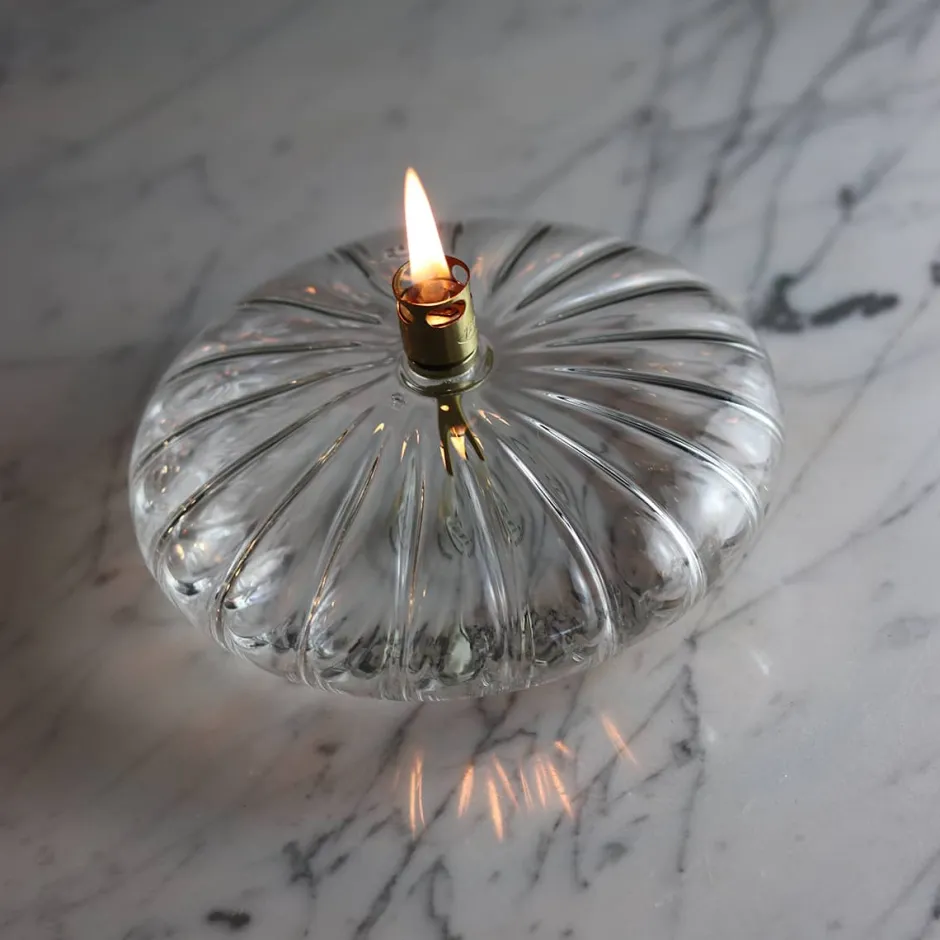 La célèbre lampe à huile se pare d’une paraison à côtes vénitiennes.