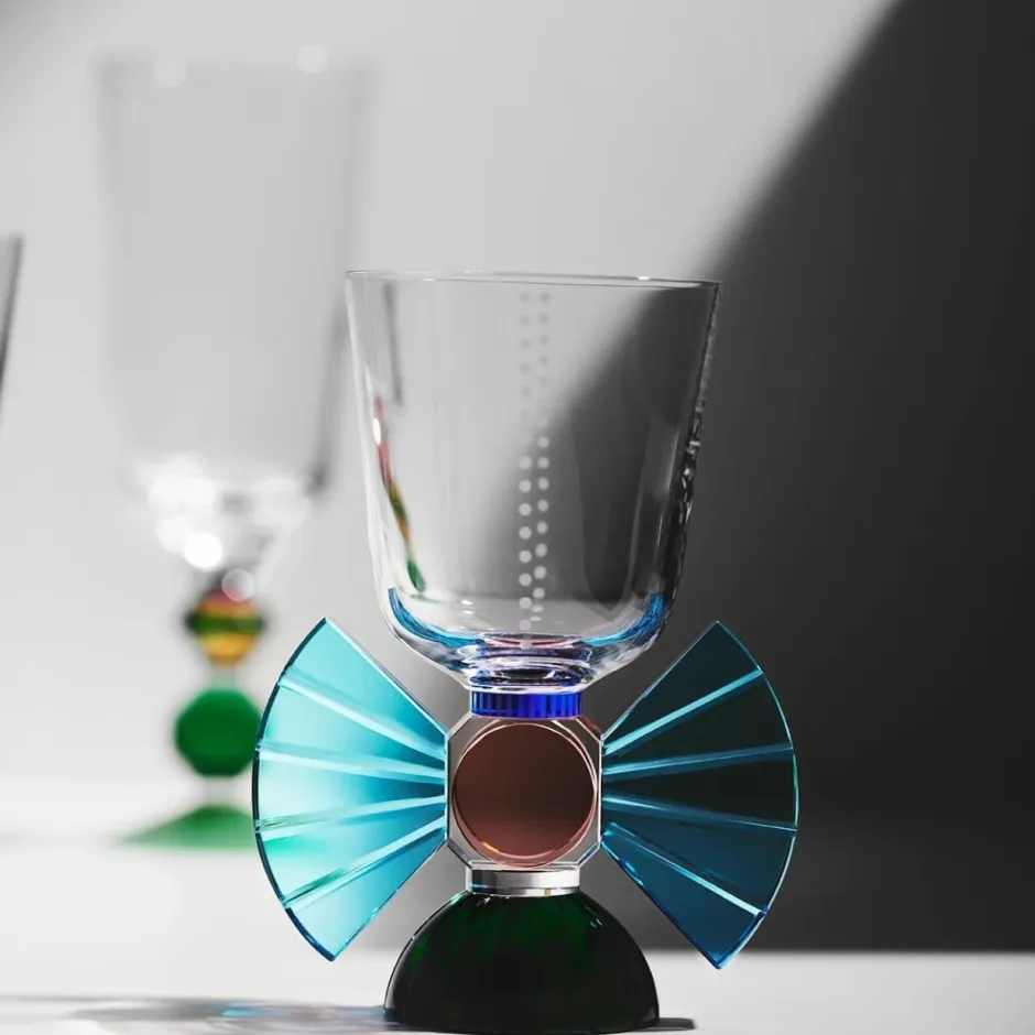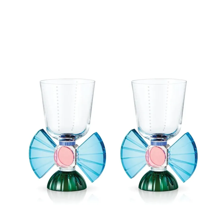 Ces verres reflètent la préférence de la marque danoise pour les tons vifs et les silhouettes fantaisistes. Inspirés de la verrerie anglaise traditionnelle, ils sont composés de coupes en verre et de pieds en cristal bleu, rose et vert taillés à la main. Placez-les sur votre table pour une touche d’originalité.
