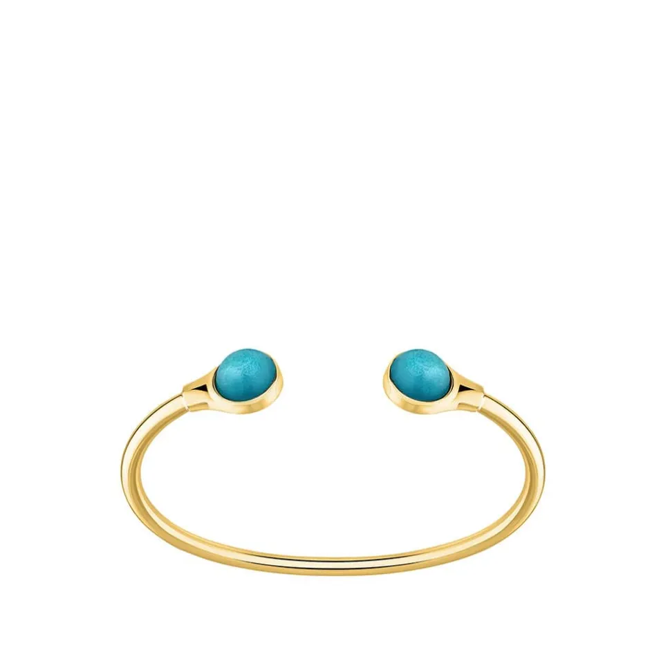 Cette nouvelle forme de bracelet se décline dans la collection Cabochon avec une sélection haute en couleurs (rouge, vert profond, bleu Cap-Ferrat, opale et noir).