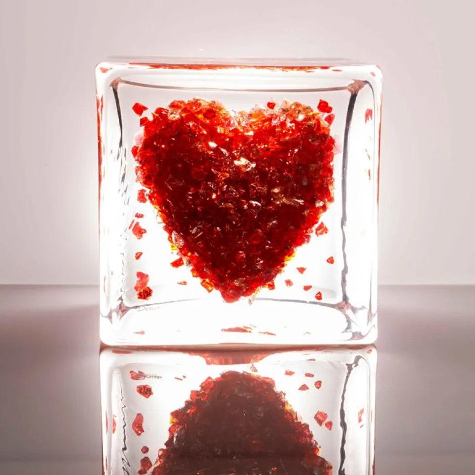 Une édition d’art limitée à seulement 75 exemplaires, entièrement imaginée et réalisée par les deux artistes qui travaillent la matière première Daum, le groisil (des fragments de cristal), d’une façon direct. Le coeur de cristal est prisonnier d’une résine translucide.