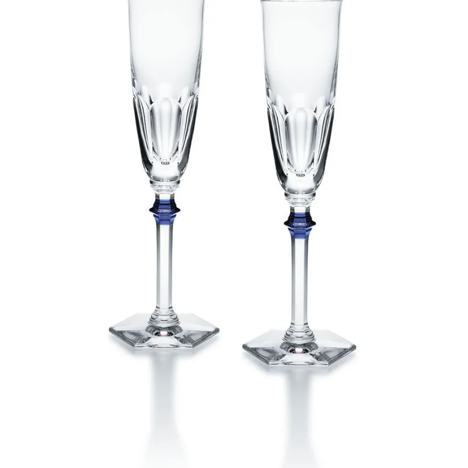 Nouveauté Baccarat 2017, la flûte à champagne Harcourt Eve est taillée main & soufflée bouche, avec un bouton laqué bleu apportant une touche de modernité.