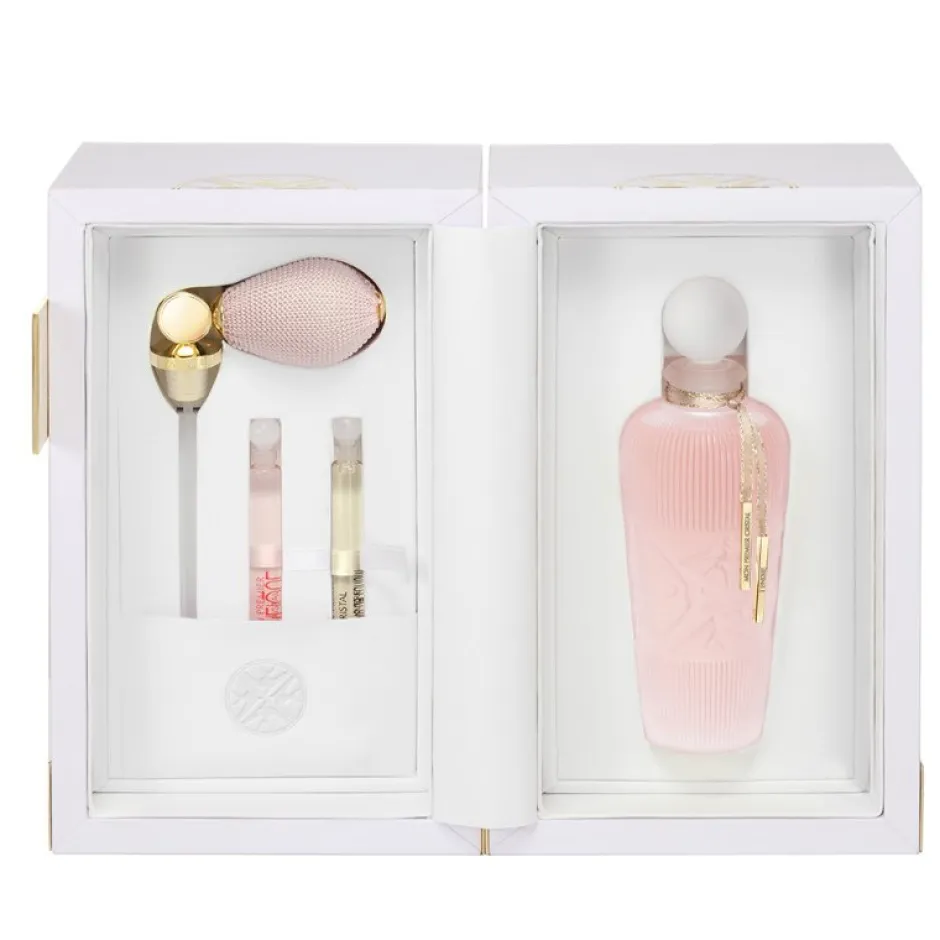 Le cristal satiné se transforme en floral oriental délicat avec Tendre, de Sidonie Lancesseur. Pour transcrire en notes olfactives la sensorialité du cristal satiné, Sidonie a choisi la plus belle des fleurs: la rose, symbole absolu de féminité, « et plus particulièrement, l’idée du pétale de rose pour son côté velouté, comme une seconde peau ». Accompagné de 2 flaconnettes d’échantillons présentant les deux autres fragrances Mon Premier Cristal.
