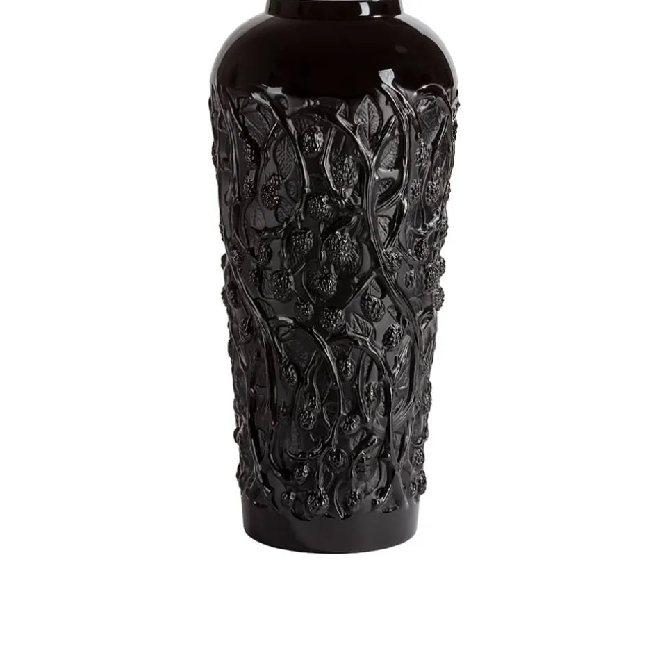 Le vase Mûres présente une abondance de baies jalousement protégées par un entrelacs de ronces. Une invitation à une promenade onirique dans les sous- bois. Le cristal satiné repoli illumine le relief finement ciselé de cette pièce maîtresse de décoration, déclinée en cristal fuchsia ou noir, en édition numérotée limitée à 188 exemplaires de chaque teinte.